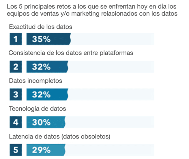 Nuestro estudio también reveló que la precisión de los datos es el principal reto al que se enfrentan actualmente los equipos de ventas y marketing.